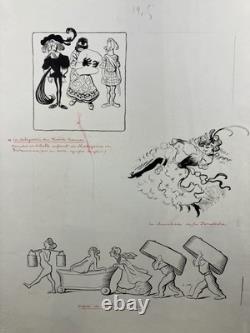 Encre de chine Bande dessinée Projet de planche pour illustration vers 1940